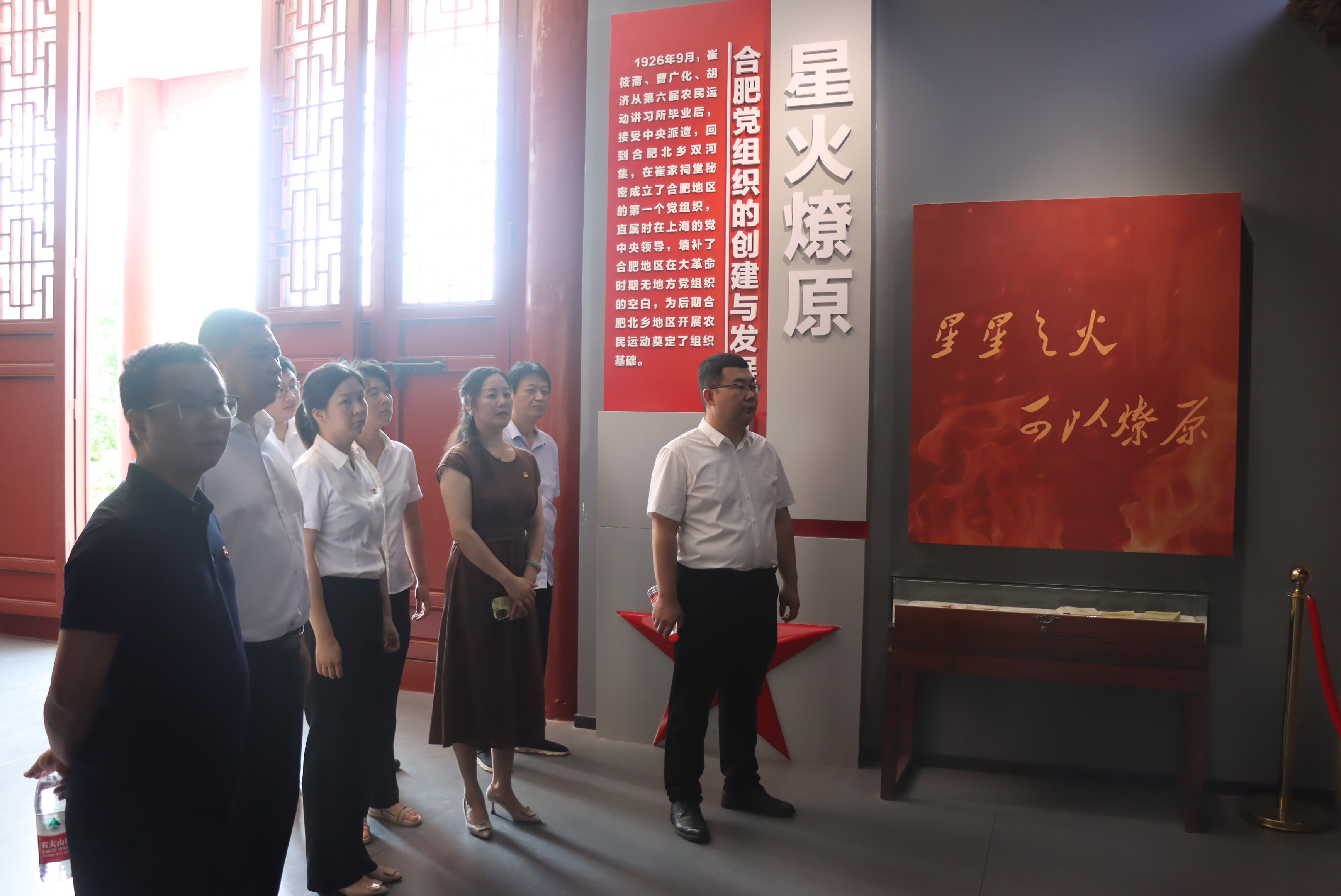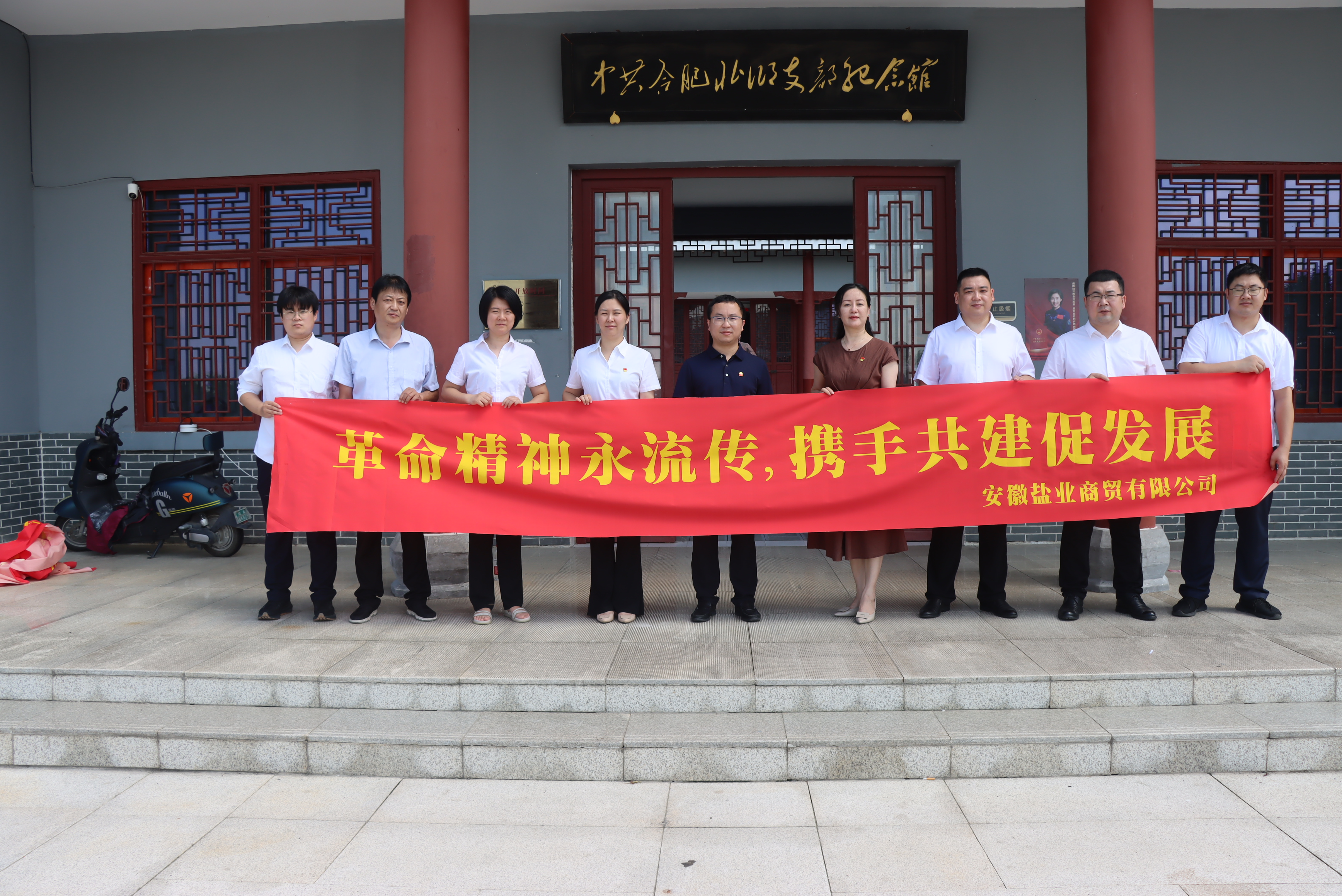 为全面、系统、深入学习习近平新时代中国特色社会主义思想,庆祝中国人民解放军建军96周年,7月27日上午,安徽盐业商贸有限公司党支部携手贵州茅台销售公司驻外三支部赴中共合肥北乡支部纪念馆联合开展党建共建活动,接受红色精神洗礼。