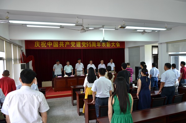 大会在雄壮的《国歌》声中开始。会上,公司党委委员、工会主席李大为同志宣读了表彰决定,向获得先进基层党组织称号的市公司第一党支部,获得优秀共产党员称号的叶永新、汪勇、徐辉、龚建海、彭巍等五位同志,获得优秀基层党组织书记称号的徐敬长同志,获得优秀党务工作者称号的王彤同志颁发了荣誉证书。
