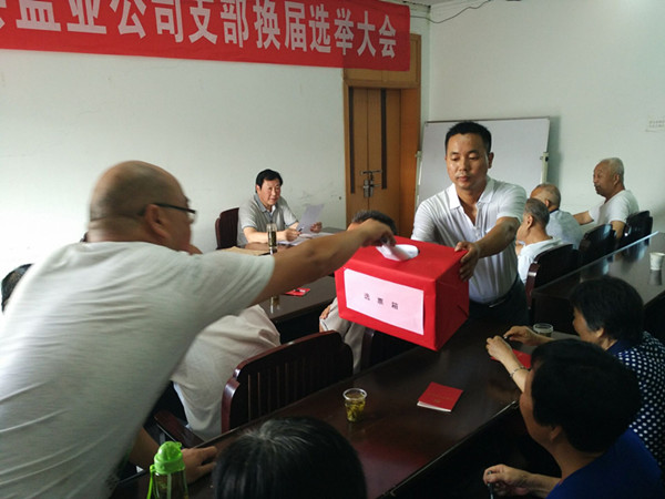 根据《中国共产党党章》和《中国共产党基层组织选举工作暂行条例》规定, 原定远县公司党支部委员会任期已届满,应按期进行换届选举。按照县直机关工委批复,我党支部于7月29日组织召开了党员大会,进行了换届选举。大会由副经理、原支委杨义合同志主持。大会应到会党员35名,实到会党员32名,其中有选举权的正式党员32名。支部副书记周存余同志对上一年党建工作作了总结报告。经到会全体党员充分酝酿讨论,采取无记名投票方式和差额选举办法,大会选举产生了周存余、杨义合、刘文明、李兴勇、张作金五位同志为新一届支部委员会委员。新当选的党支部委员会委员随即召开了第一次支委会议,会议一致推选周存余同志任支部书记,同时对其他委员进行了分工,并书面报请县直机关工委批复。