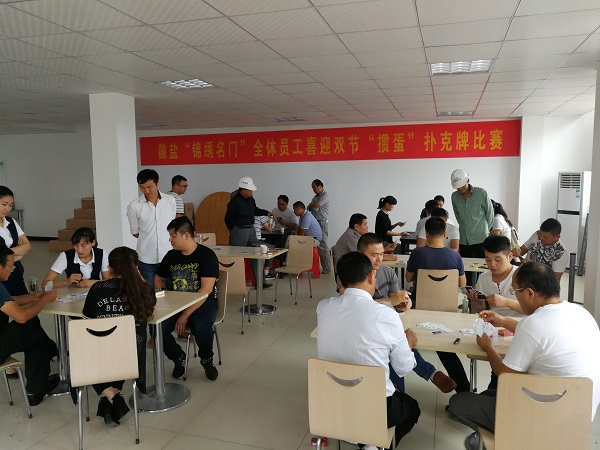 为迎接即将到来的中秋和国庆佳节,同时加强公司各部门之间的联系,方便日常工作的顺利开展,活跃公司内部员工工作气氛,激发公司员工的工作热情。9月21日,“徽盐•锦绣名门”项目公司食堂热闹非凡,公司各部门员工共同参加喜迎双节“掼蛋”扑克牌比赛。