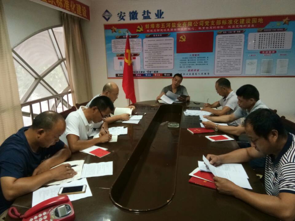近日,五河盐业公司党支部召开“讲严立”专题警示教育学习会,全体在岗党员参加,党支部书记薛宝成主持会议。