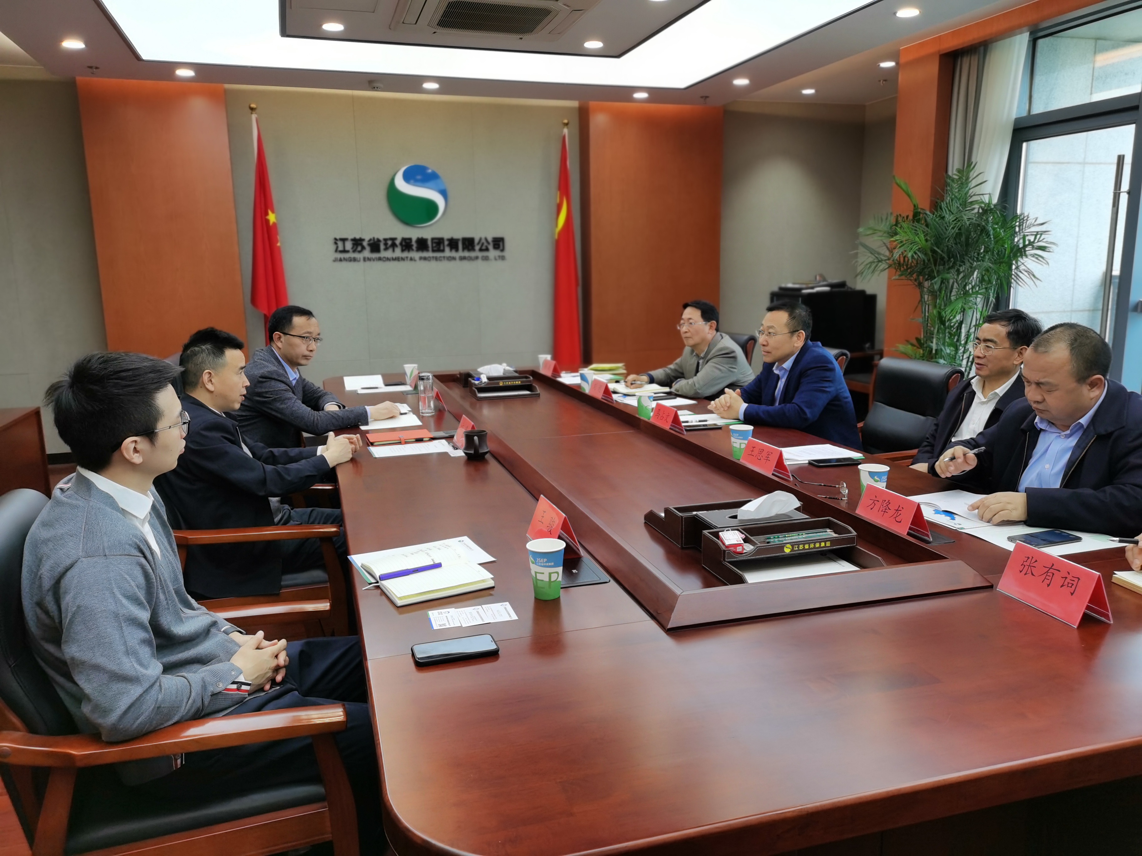 3月30日,公司党委书记、董事长马占文,党委副书记、总经理王思军,外部董事刘超一行,赴江苏省环保有限公司考察调研。