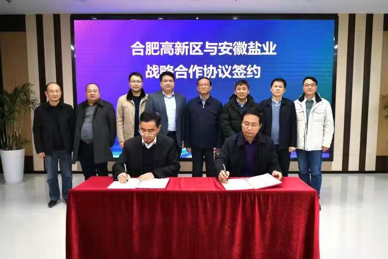 省盐业党委副书记、总经理、董事王思军、合肥市高新区管委会副主任韦建华代表双方签署战略合作协议。省盐业党委委员、副总经理杨晓彬,省国资委企业改革处相关负责人,安徽环境科技、高新区生态环境分局、财政局、高新等相关负责人参加签约仪式。