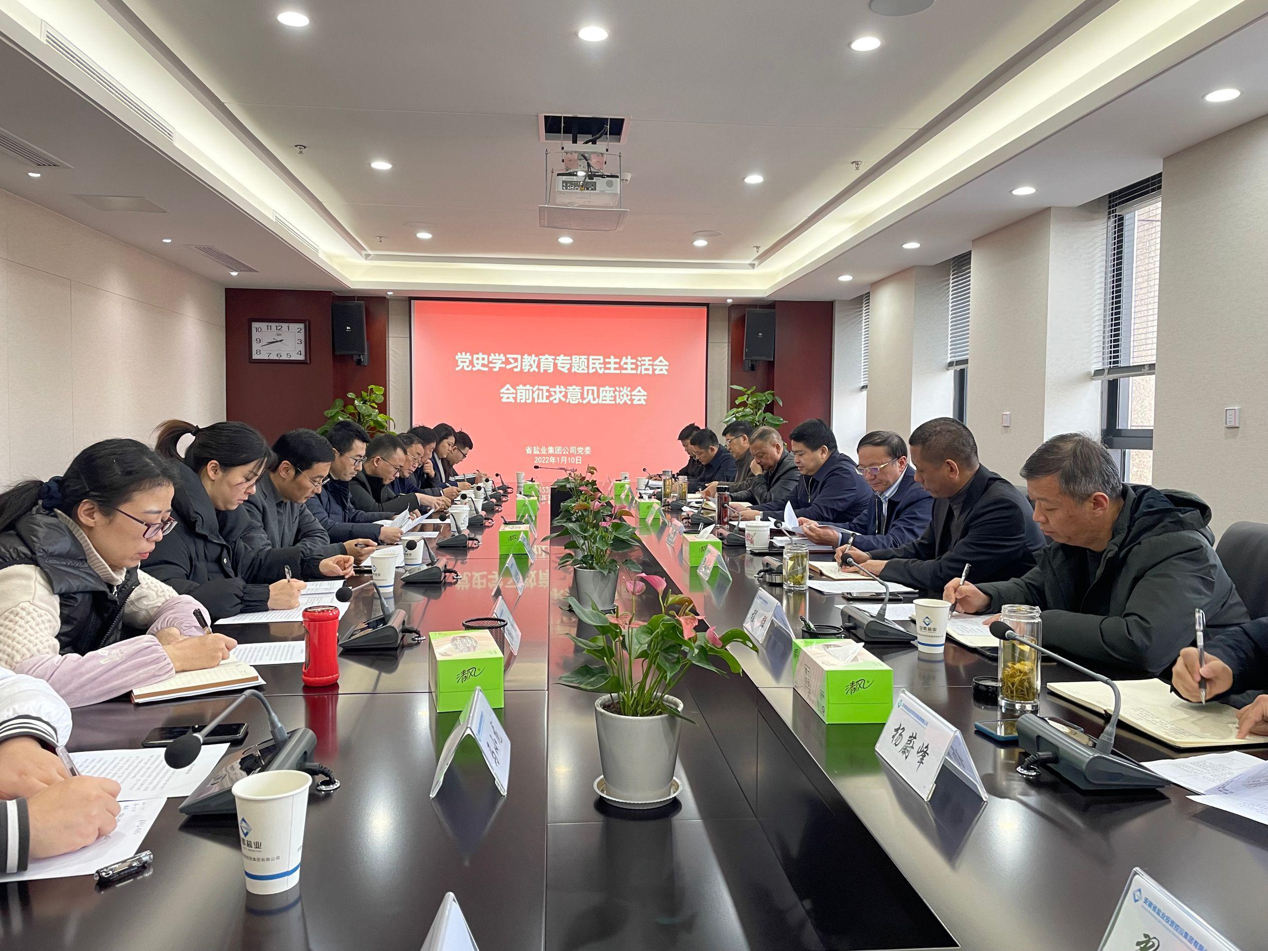 1月10日上午,公司召开领导班子党史学习教育专题民主生活会前征求意见座谈会,会议由公司党委书记、董事长罗太忠主持,公司党委委员、副总经理、职工董事颜宗华出席,20名来自各单位的党员干部代表、职工代表和统战成员代表参加会议。