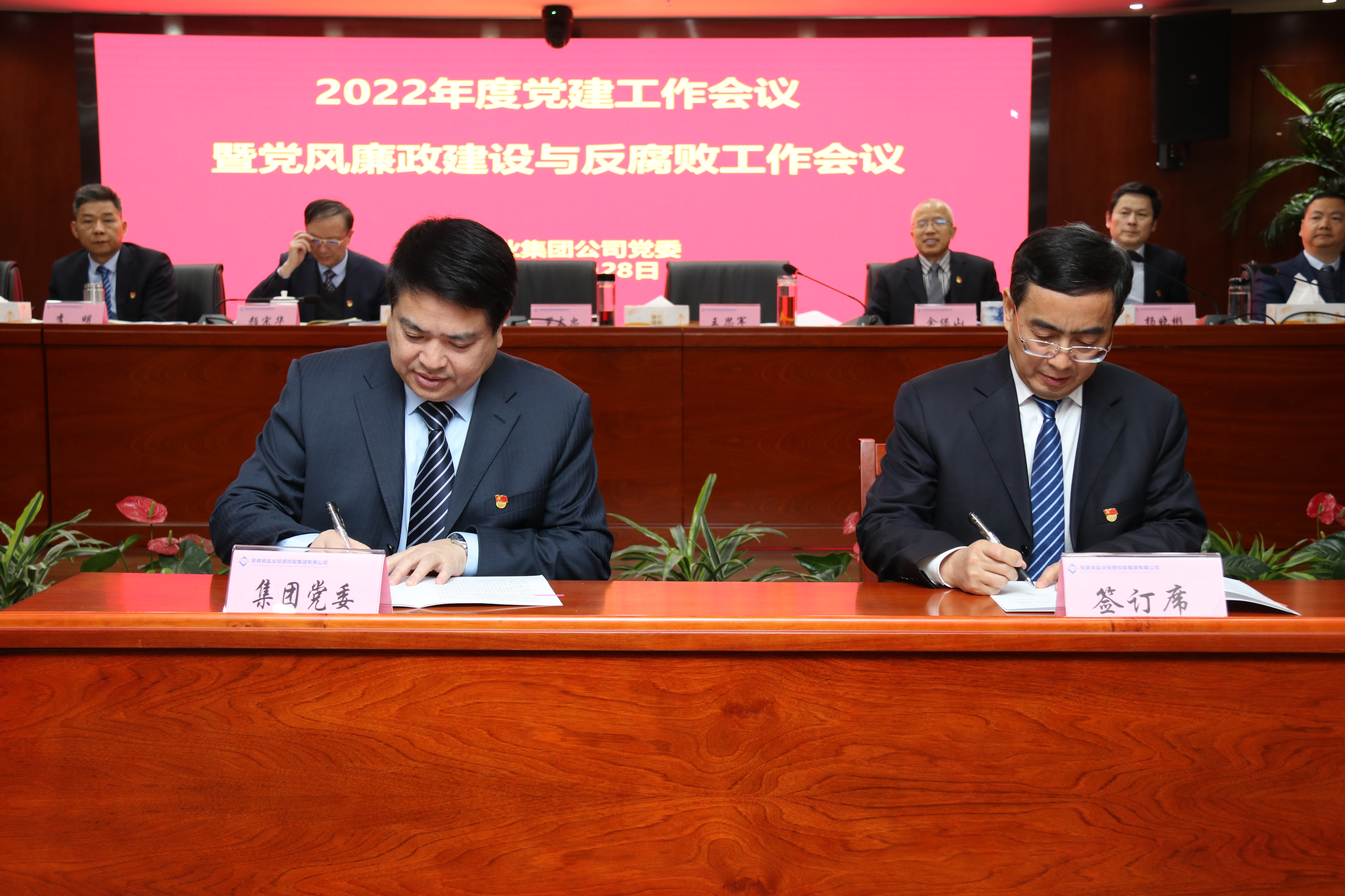 会议系统总结了2021年度公司党的建设和党风廉政建设工作开展情况,分析了存在的不足,提出了下一步重点工作任务。会上,还签订了班子成员党建工作“一岗双责”责任书、党建工作“第一责任人”责任书、党风廉政建设主体责任书和监督责任书。