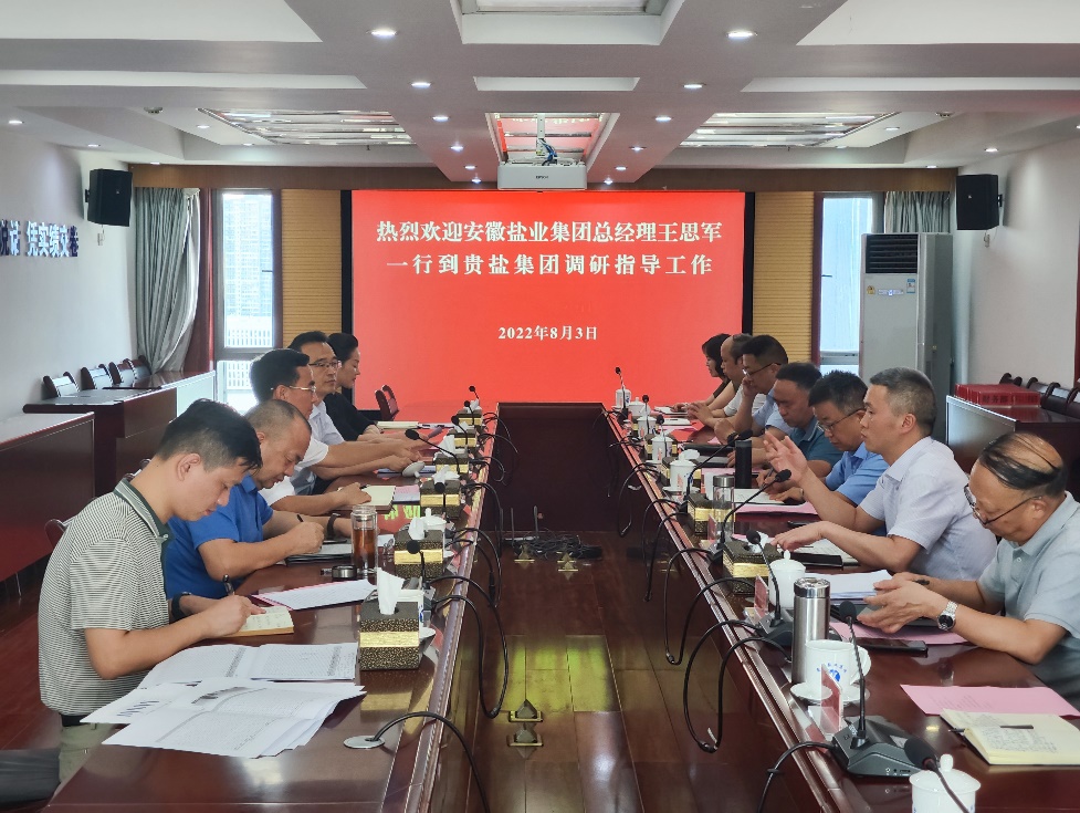 8月3日,王思军一行拜访了贵盐,并与贵盐党委书记、董事长任建生,党委副书记、副董事长、总经理梅桂等座谈交流。期间,王思军介绍了省盐业的经营与改革发展等情况,并重点介绍了发展生态环保以及健康养老等新兴产业的做法,表达了在环保治污、健康养老、乡村振兴以及现代农业等领域进一步加强合作的意愿。王奇介绍了盐改以来在稳市场、调结构、促转型等方面的经验和做法。任建生对省盐业近年来在推动改革转型方面的尝试表示了敬佩,认为有很多值得学习的地方,并表示希望双方进一步加强了解,互通有无,加快推动合作落地。