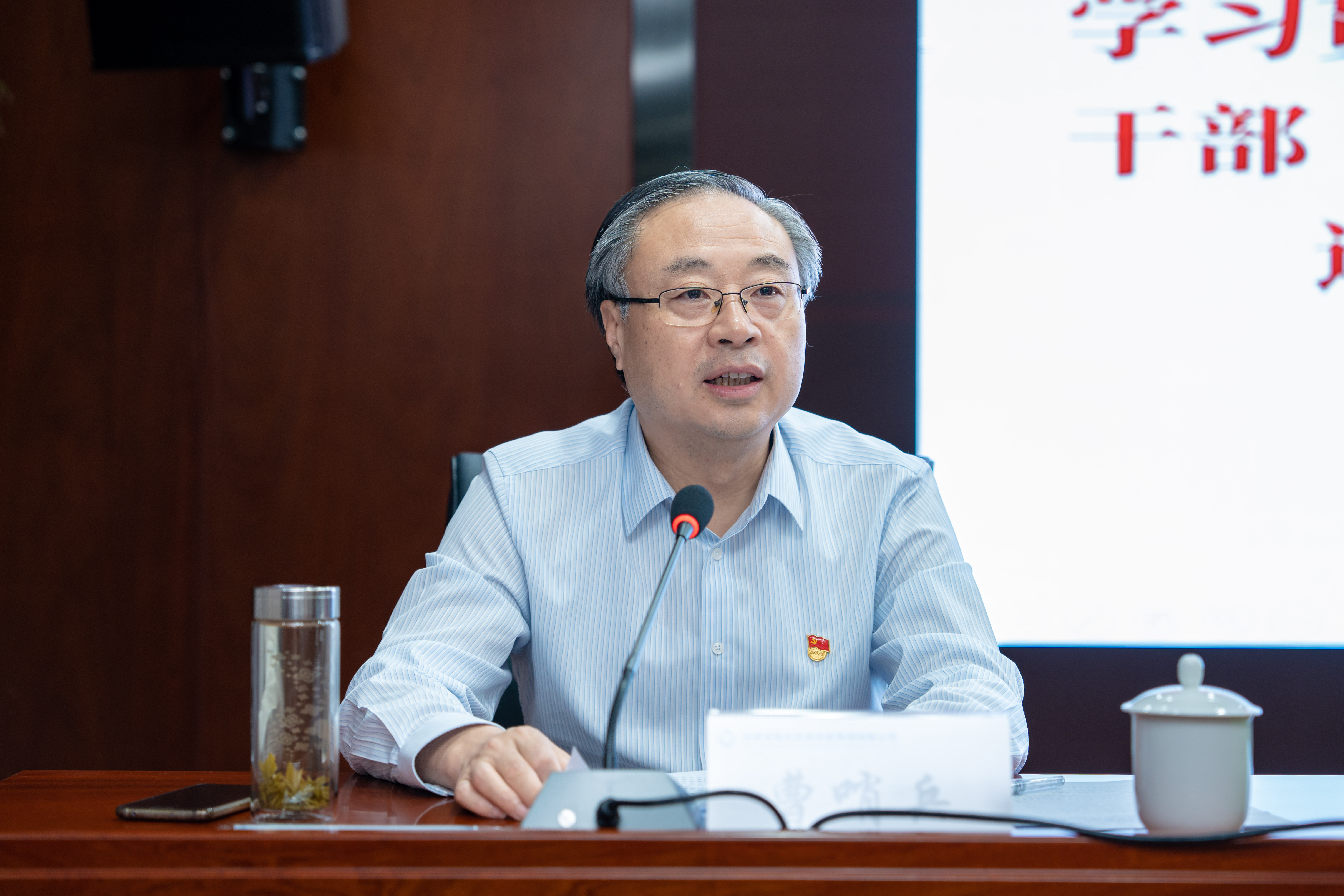 曹哨兵从深刻领会习近平总书记重要讲话的重大意义,深刻领会即将召开的党的二十大的时机、意义、任务,深刻领会当前国际国内形势、把发展进步的命运牢牢掌握在自己手中,深刻领会过去5年工作和新时代10年的伟大变革,深刻领会新时代新征程必须坚持以马克思主义中国化时代化最新成果为指导,深刻领会新时代新征程必须坚持以中国式现代化推进中华民族伟大复兴,深刻领会全面建成社会主义现代化强国的战略部署,深刻领会实现新时代新征程各项目标任务、关键在党,深刻领会新时代新征程必须坚持全心全意为人民服务的根本宗旨等方面,对习近平总书记在省部级主要领导干部专题研讨班上的重要讲话精神进行了全面深入地解读。他指出,学习好、宣传好、贯彻好习近平总书记重要讲话精神是迎接党的二十大的一项重要政治任务,盐业各级党组织要上好“紧跟总书记”的政治大课、“奋进新征程”的思想党课,激励广大党员干部奋进新征程、建功新时代。