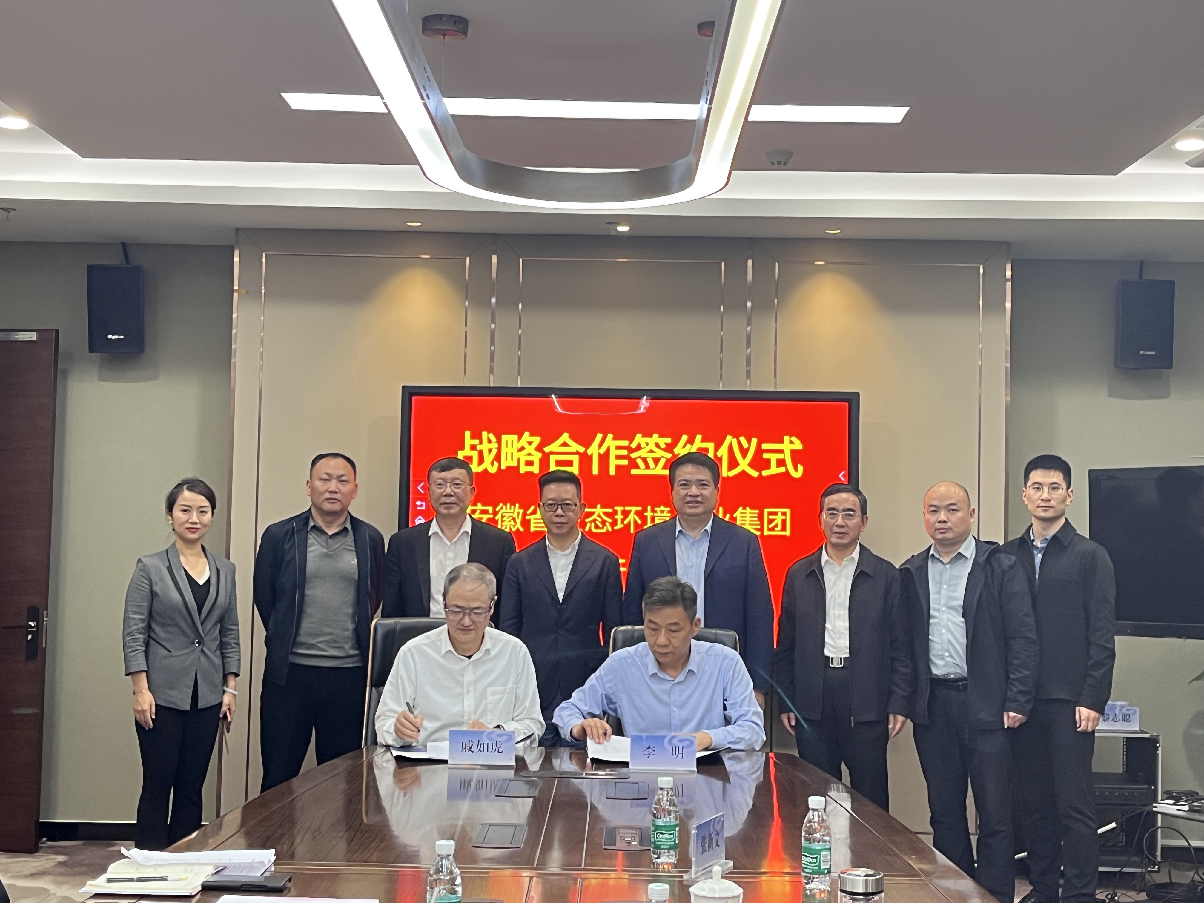 省生态环境党委委员、总会计师李明,兴业银行合肥分行战略发展部总经理戚如虎代表双方签署战略合作协议,双方有关部门负责同志参加座谈会及签约仪式。