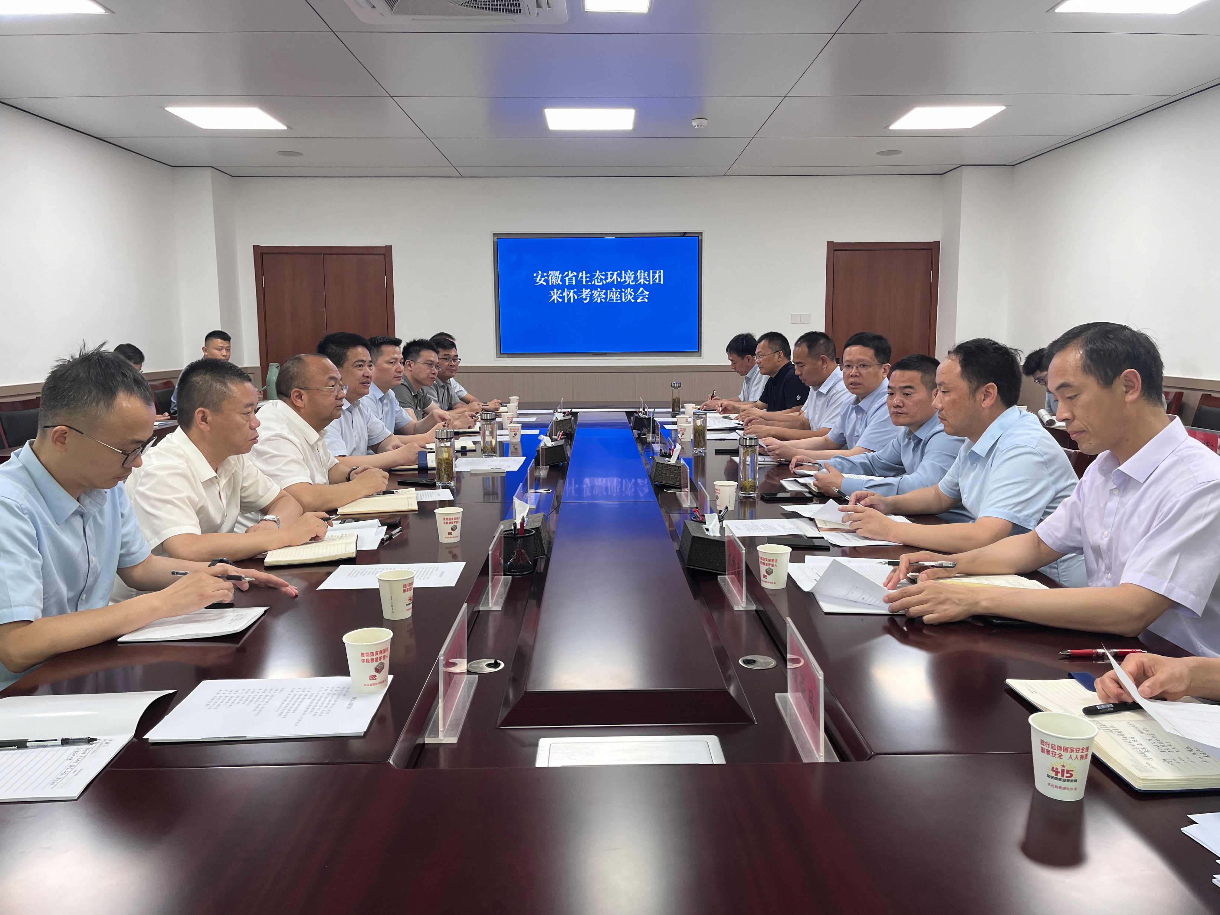 6月17日,省生态环境党委书记、董事长罗太忠拜访蚌埠市委常委、怀远县委书记潘君齐,怀远县委副书记、县长高东升,双方举行工作会谈。