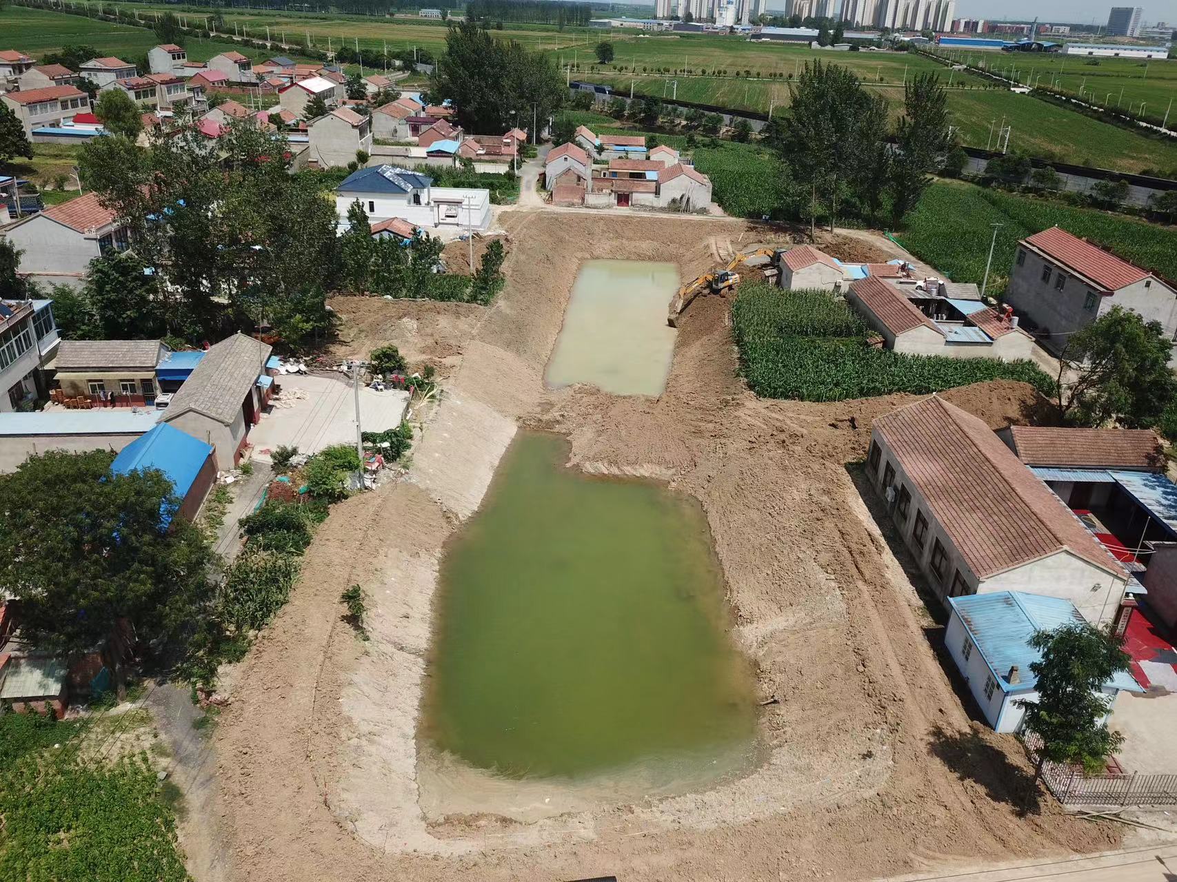 环境科技为改善这一现状,提升村民幸福感,自主设计生态修复、内源治理等治理方案。通过清淤、清杂、清垃圾、边坡修整,塘中放置人工浮岛(种植水芹),边坡采用植物护坡等措施,致力于把黑臭坑塘建成水清、岸绿、景美村民休闲娱乐的好地方,成为全县名副其实的黑臭水体治理示范点。该项目于7月8日进场施工,受近期当地强降雨影响,截止到7月23日,形象进度约完成60%,水体内源治理、边坡修整及排水渠建设完成70%。