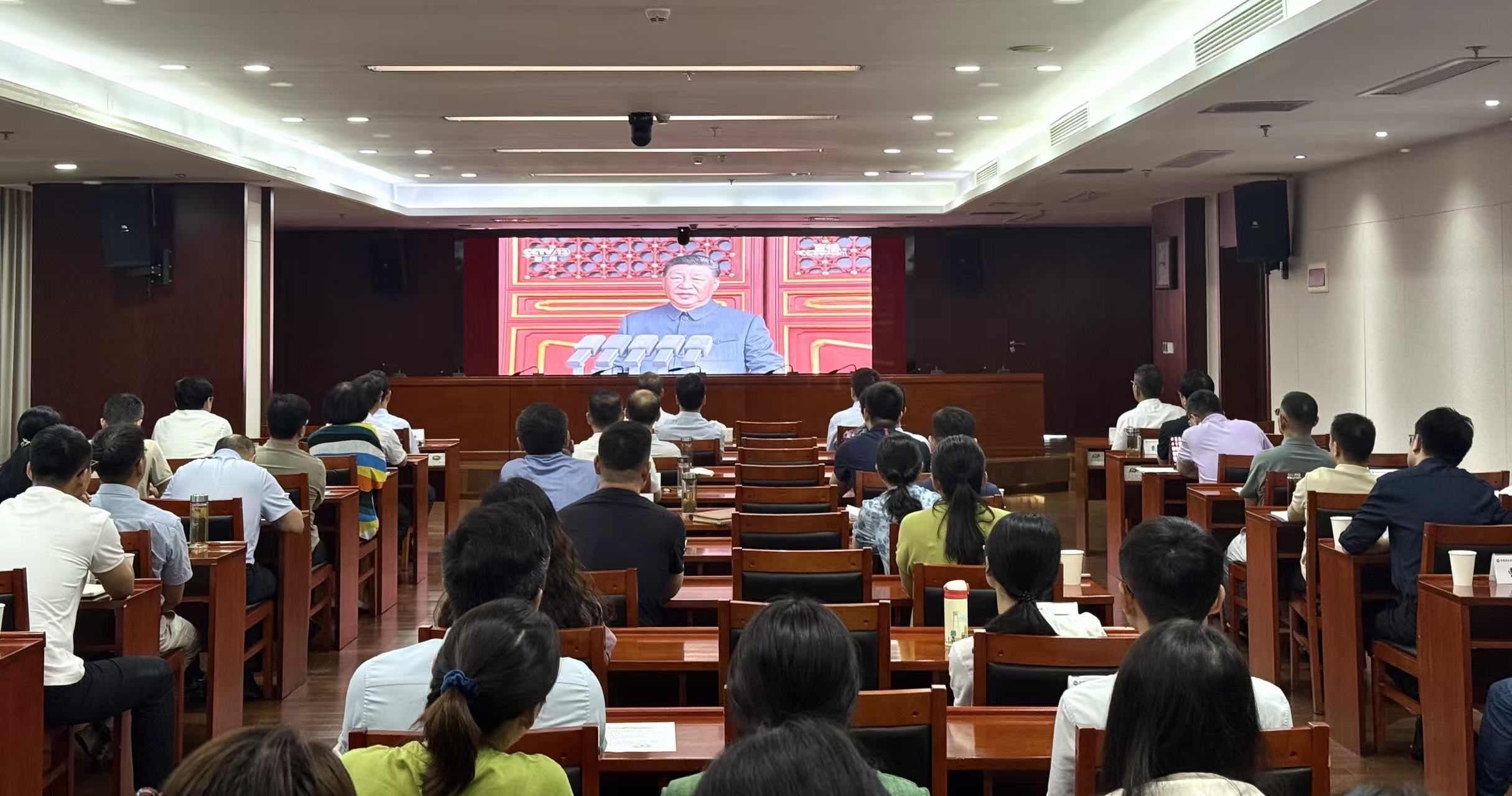 9月3日上午,纪念中国人民抗日战争暨世界反法西斯战争胜利80周年大会在北京天安门广场隆重举行。省生态环境党委紧扣“强国复兴有我”活动主题开展主题党日活动,组织广大党员干部职工集中收看大会直播盛况,认真聆听习近平总书记重要讲话,共同见证振奋人心的历史时刻。