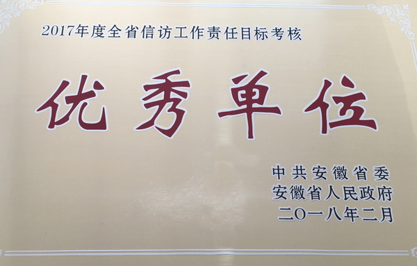2月4日,中共安徽省委办公厅、安徽省人民政府办公厅召开全省信访工作会议,会上对2017年度省属企业信访工作责任制目标考核得分列前15名省属企业进行了表彰,省盐业公司等15家省属企业荣获“2017年度全省信访工作责任目标考核优秀单位”称号。