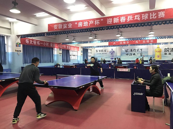 为加强徽盐企业文化建设,丰富职工业余生活,由公司工会主办、盐业房地产公司工会协办的安徽盐业“房地产杯”迎新春乒乓球比赛于1月18日在省体委乒乓球馆举行,来自在肥单位三十余名乒乓球运动爱好者参加了比赛。