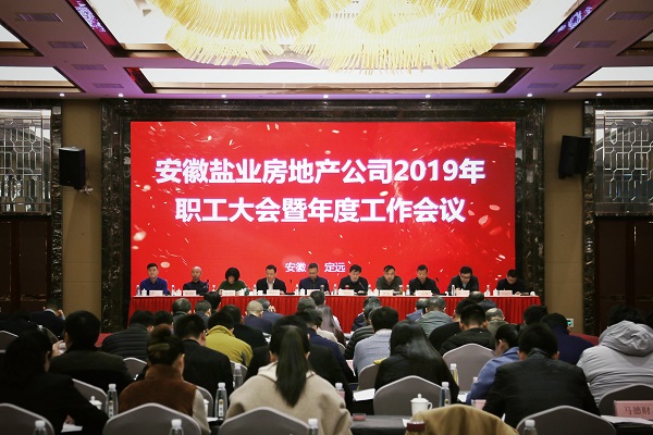 3月15日,安徽盐业房地产开发有限公司2019年职工大会暨年度工作会议在定远县徽盐安徽饭店召开。会议主要任务是,总结2018年工作,分析当前面临形势,交流工作经验,表彰先进,研究部署2019年重点工作,不断推动安徽盐业房地产公司持续健康快速发展。