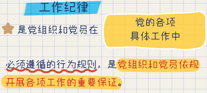 工作纪律是各级党组织和广大党员在工作中必须遵循的行为规范,是确保我们党的各项工作沿着正确方向开展的必然要求。