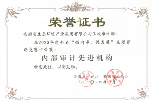 近年来,在上级机关的指导下,在公司党委的领导下,法规审计队伍在练内功履行部门岗位职责的同时,圆满完成省审计厅、省国资委等赋予的内审、内控专项工作任务。审计、合规管理、内部控制等方面经验做法,被上级机构内刊表彰介绍。部门被省审计厅授予“内部审计先进机构”、被公司团委授予“青年文明号”。部门同志被聘为合肥仲裁委员会仲裁员、法治安徽建设研究会理事、省涉案企业合规第三方监督评估机制专业人员,被授予全省“优秀内部审计人员”,选送的论文在全省审计青年论坛评比中获得优秀奖。