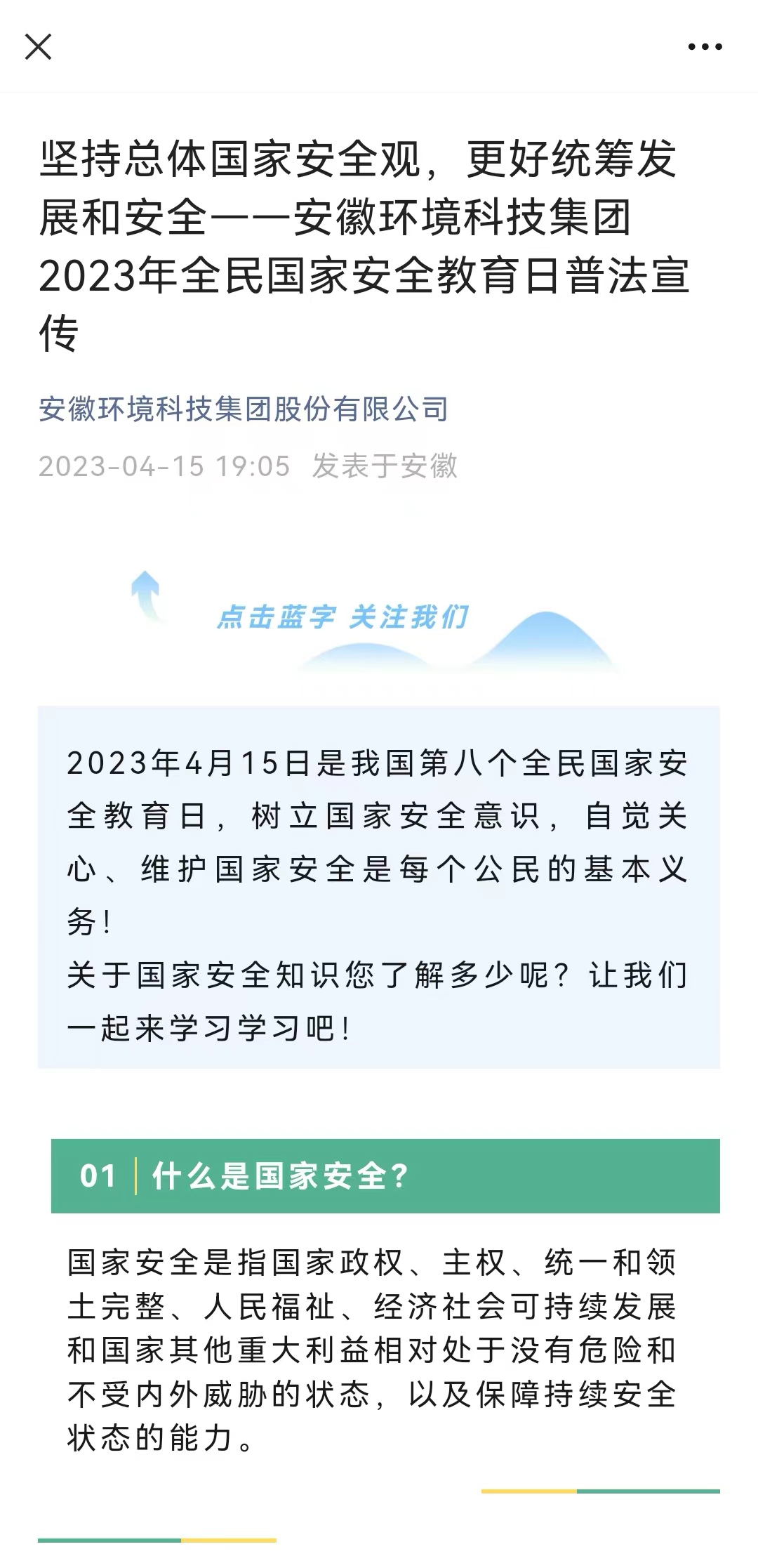 环境公司、发展公司、地产在微信公众号、官网政策法规平台上传国家安全相关法律法规,在办公场所张贴宣传海报。