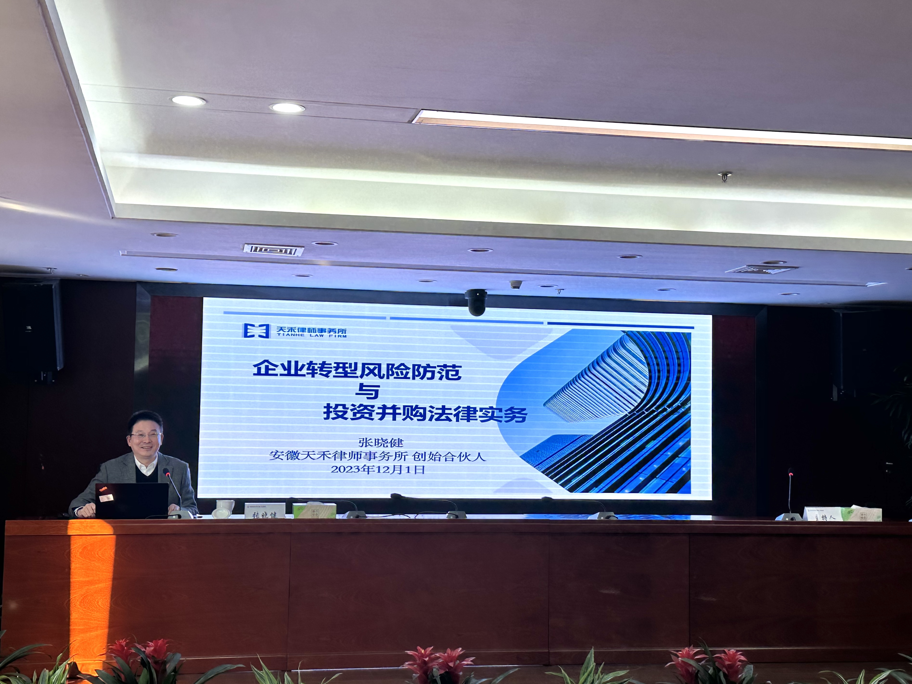 培训旨在弘扬宪法精神、培养员工合规管理意识、推动强化对投资并购问题集中领域的管控,防范和减少相关风险。安徽省人民政府法律顾问、安徽天禾律师事务所创始合伙人张晓健以“企业转型风险防范与投资并购法律实务”为题展开专题讲座。