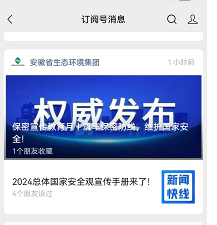 今年是习近平总书记提出总体国家安全观10周年,4月15日是第九个全民国家安全教育日。根据安徽省国资委统一部署安排,公司迅速部署,积极组织开展以“总体国家安全观·创新引领10周年”为主题的普法宣传活动。