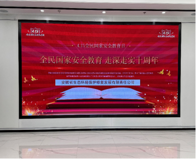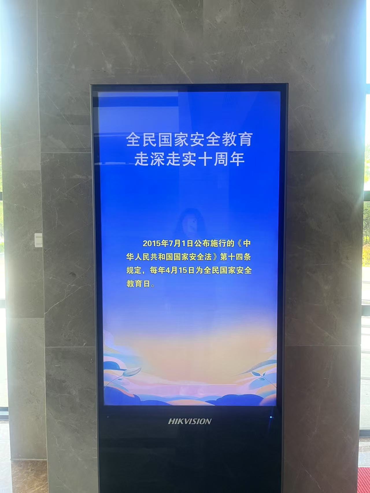 环境科技在办公区域张贴“全民国家安全教育 走深走实十周年”主题海报,以醒目图文传递国家安全核心要义;运用LED显示屏播放“4.15全民国家安全教育日”PPT,一楼大厅连续滚动播放宣传海报及警示案例,覆盖员工日常办公动线。