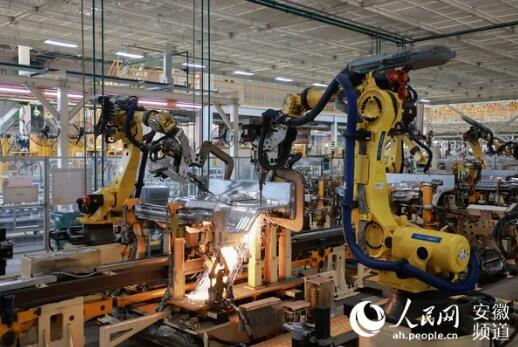 江汽生产线。图为机器人正在进行焊接。人民网 王晓飞摄