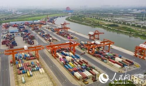 安徽省港航旗下的合肥港国际集装箱码头。人民网 张俊摄