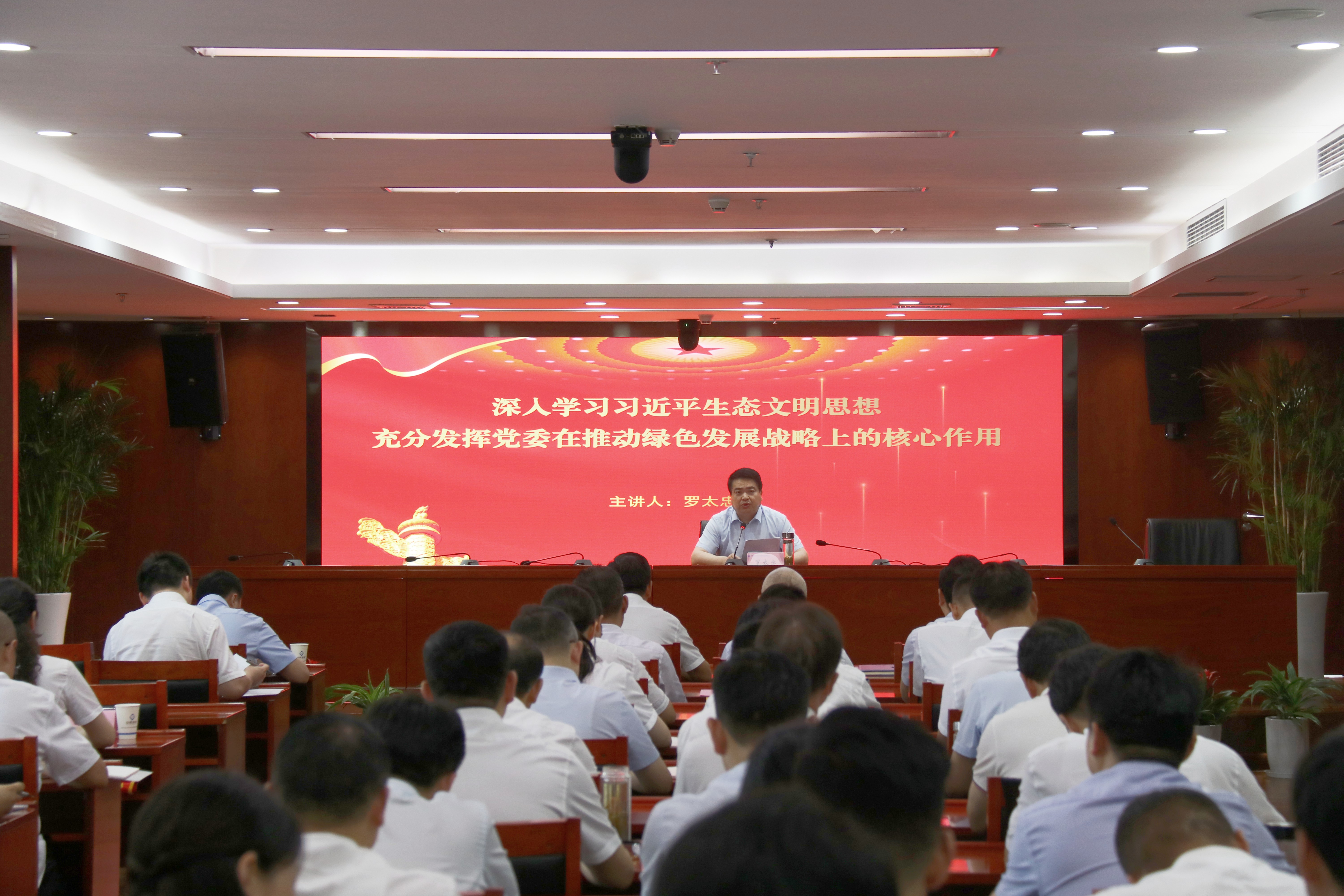 罗太忠以“深入学习习近平生态文明思想,充分发挥党委在推动绿色发展战略上的核心作用”为题作专题党课报告,从深刻理解和把握习近平新时代中国特色社会主义思想所蕴含的观点立场方法、深刻理解和把握党的二十大的战略部署和目标任务、深刻理解和把握习近平总书记关于本地区本部门本领域的重要讲话、重要指示批示精神以及公司未来发展的战略和路径等方面,详细阐述了习近平新时代中国特色社会主义思想理论的精髓,明确了公司转型生态环境产业的具体路径,进一步统一了思想、凝聚了共识。罗太忠在报告中指出,党的二十大将“生态环境保护发生历史性、转折性、全局性变化”作为新时代十年伟大变革之一,将“促进人与自然和谐共生”作为中国式现代化本质要求的重要内容。要深刻领会习近平生态文明思想和习近平总书记关于绿色发展的重要论述,充分把握贯彻落实绿色发展战略的重大意义,进一步增强推动公司转型生态环境产业的使命感、责任感和紧迫感。要学深悟透习近平新时代中国特色社会主义思想,更好运用贯穿其中的立场、观点、方法指导推动工作,进一步提升政治能力、思维能力、实践能力,把习近平总书记关于推进生态文明、建设美丽中国的指示精神落到实处。
