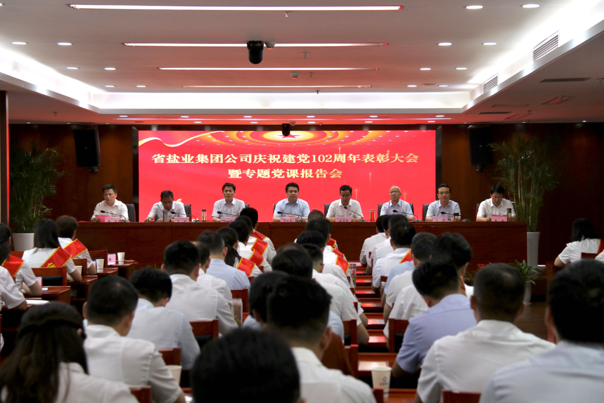 6月29日下午,省盐业公司召开庆祝建党102周年表彰大会暨专题党课报告会。公司党委书记、董事长罗太忠出席会议并作专题党课报告。省委主题教育第十三指导组相关同志列席指导。公司党委副书记、总经理、董事王思军主持大会。