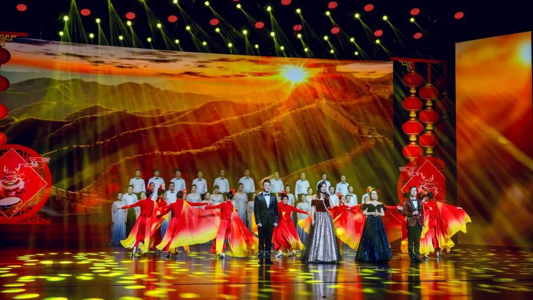 演出精彩纷呈,高潮迭起,歌声、乐声、掌声烘托出热烈的喜庆氛围。最后,联欢会在全场同唱《再一次出发》歌声中落下帷幕。