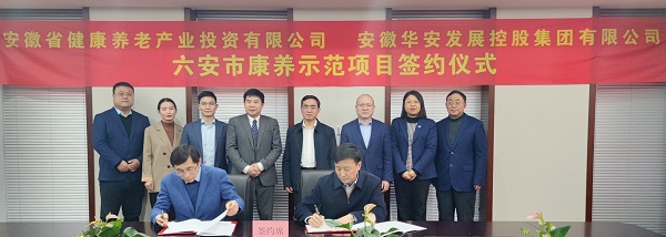 2月22日,安徽省健康养老产业投资有限公司与安徽华安发展控股有限公司签署六安市康养示范项目合作协议。省盐业党委副书记、总经理、董事,省健康养老产业投资有限公司党委书记、董事长王思军,安徽华安发展控股董事长张怀安出席签约仪式。省健康养老产业投资有限公司负责人吴小平、安徽华安发展控股副董事长程钰分别代表双方签署合作协议。
