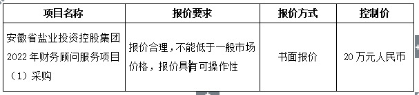 1.项目名称:安徽省盐业投资控股2022年财务顾问服务项目(1)