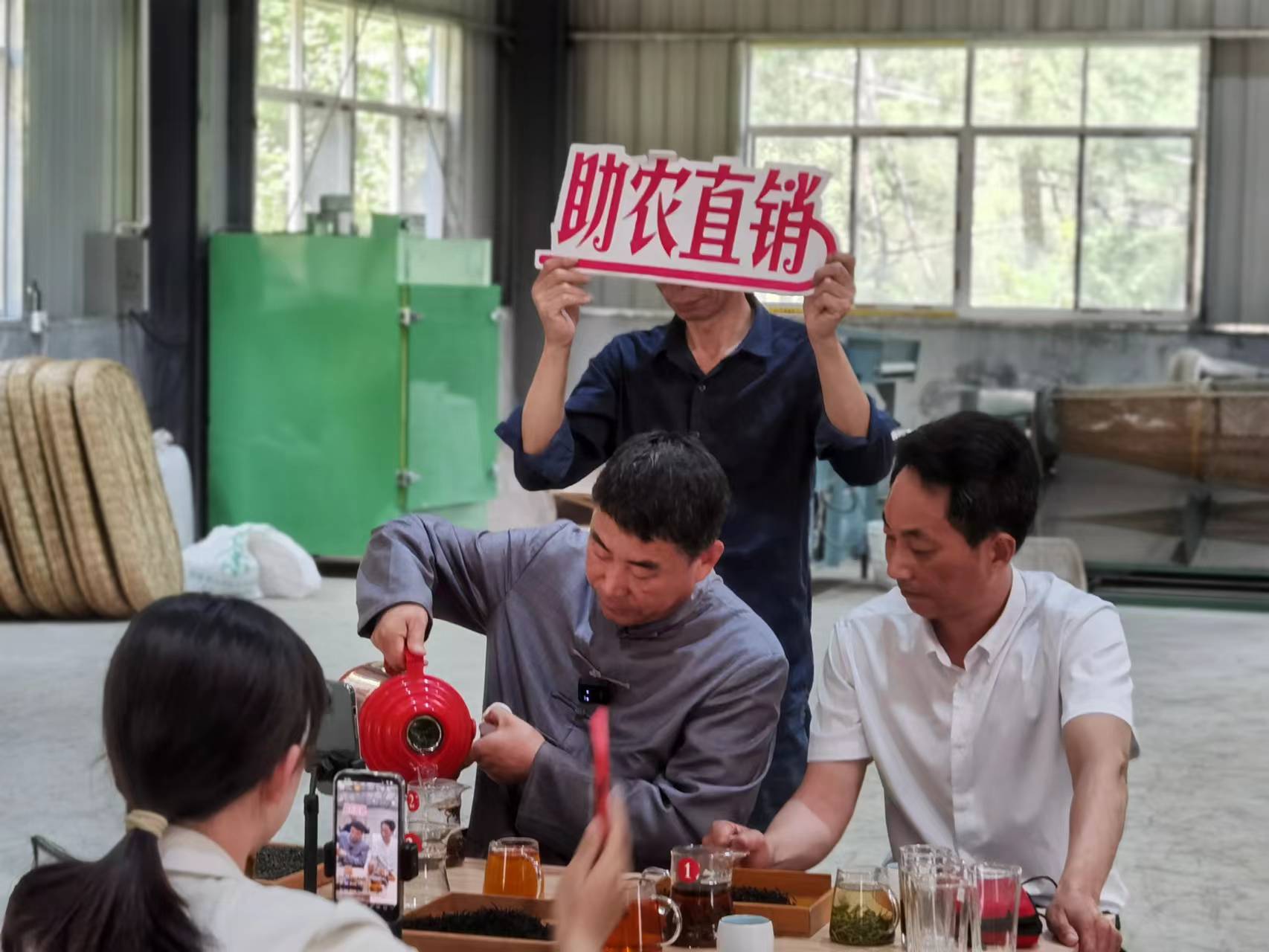 5月7日上午,安徽天方茶叶董事长郑孝和先生一行受邀来到西河村集体茶厂云谷茶厂,介绍了天方茶叶助农网上直销茶叶方法和经验,并对云谷茶厂网上直销茶叶进行了培训和指导。上午11点,云谷茶厂室内抖音直播销售平台正式上线,西河村驻村第一书记汪令富、村委负责人李运生同天方董事长郑孝和带着西河村生产的江北高山红茶—天柱红走进直播间,向网友们在线介绍了天柱红的种植、采摘、品质鉴别,经过一个多小时的直播推介,销售天柱红红茶近六千元。下午2点,网上直播助农直销茶叶活动改在茶园进行,通过实地高山茶园宣传推介云谷茶厂生产的优质天柱红红茶和天柱玄月绿茶。