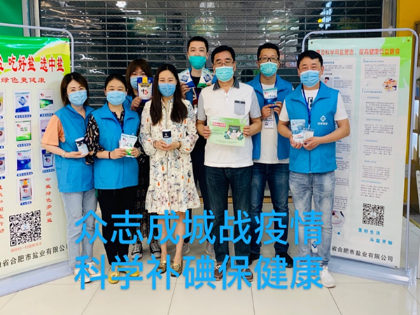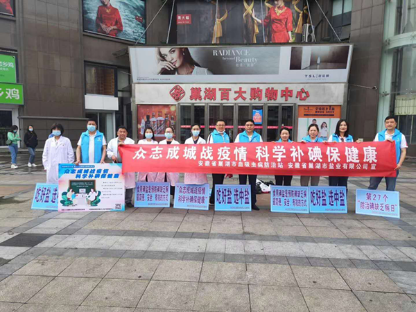 (图为巢湖市盐业公司和市吸血虫病防治站联合开展的515“众志成城战疫情,科学补碘保健康”碘缺乏病宣传活动)