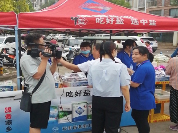 近日,在淮南市盐业公司开展盐品宣传推广活动中,淮南电视台“天天帮忙”栏目的记者全程跟踪报道。