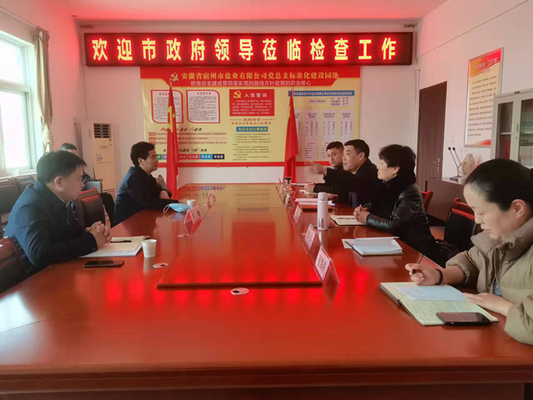 3月1日,宿州市副市长杨泽胜到宿州市盐业公司调研指导工作,市政府办副主任程利陪同调研。