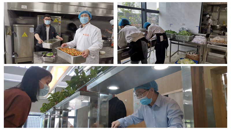 突如其来的疫情,对环境职工餐厅产生了较大的影响,超过半数的餐厅工作人员被隔离在家,而且由于全体员工在公司隔离,一日三餐均需在职工餐厅就餐,面对激增的工作量,餐厅工作人员产生了较为明显为畏难情绪,面对这一情况,环境党员队伍冲锋在前,各支部轮流安排党员先锋岗前往餐厅后厨帮忙,在厨师的安排下洗菜摘菜、打饭洗碗,提供力所能及的帮助,全力保障职工每顿都能吃上新鲜可口的饭菜。