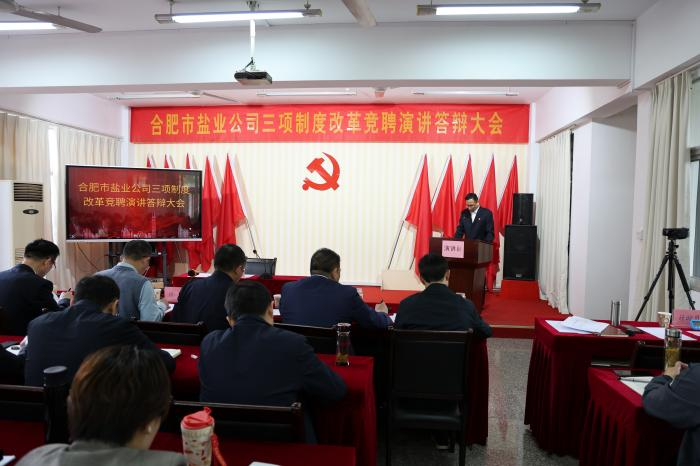 4月17日,合肥市盐业公司中层管理岗位竞聘演讲答辩大会在公司四楼会议室举行。盐业纪委、专家评委、公司领导班子、所属各县(市)公司主要负责人,本部全体在岗职工共70余人参加了会议。