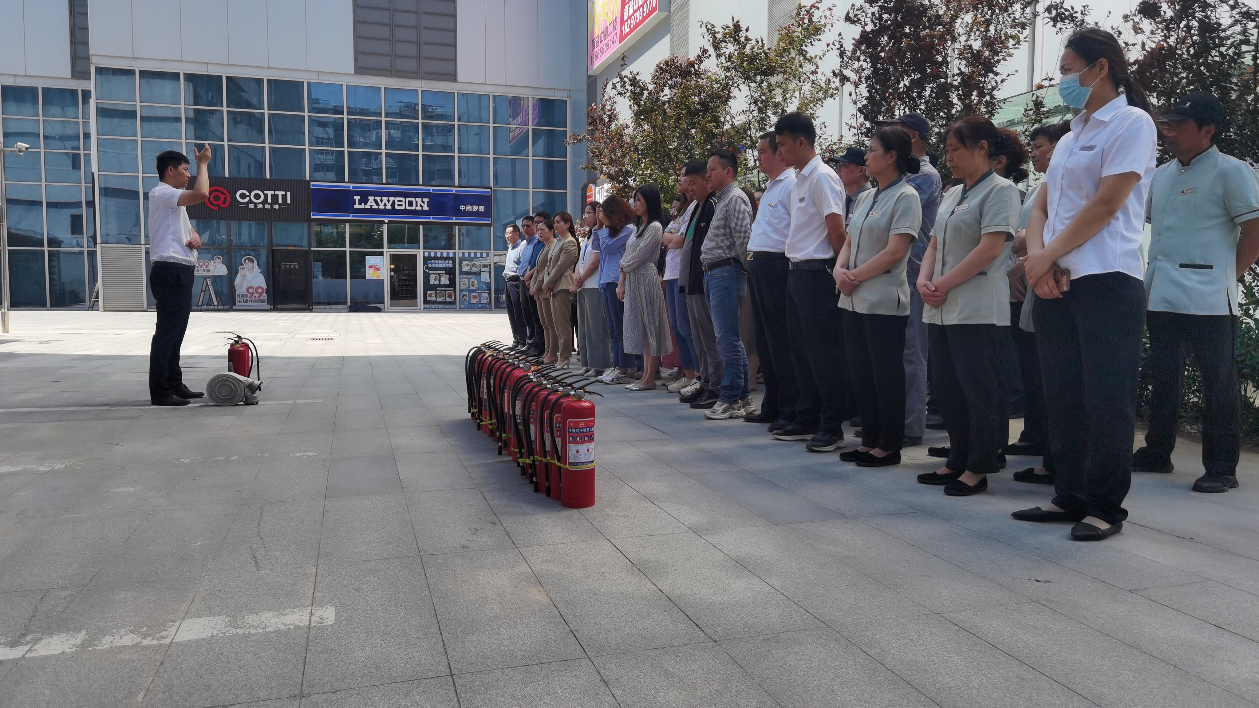 2024年5月10日,酒店管理公司在徽盐安徽中心组织物业、商管公司及入驻商户开展消防安全演练。