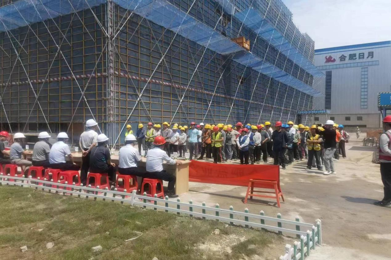建设单位合肥市盐业公司张鹰董事长宣布安全月启动,并在启动仪式上强调:合肥盐业冷链食品加工中心项目在各相关单位的相互配合下,在各位工友的辛勤劳动下,工程主体结构已经施工完成,对广大一线施工人员的辛勤付出表示感谢。在第23个全国安全月来临之际,应该深刻认识到安全的重要性。生命无价,预防安全是每个人的责任。即将进入高温天气,一定要在确保安全的前提下,控质量,抓进度,注意人身安全,平平安安的完成好冷链项目建设。