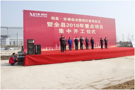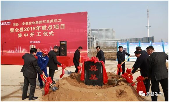 3月23日上午,泗县县委县政府在徽盐·虹都府项目红星美凯龙地块隆重举行泗县·安徽盐业集团红星美凯龙暨全县2018年重点项目集中仪式。县领导张志强、王法立、赵朝法、庞壮、赵明等四大班子成员、安徽盐业徽盐地产领导程群、泗县项目全体人员及县直有关单位、40个集中开工项目负责人等出席了奠基仪式。