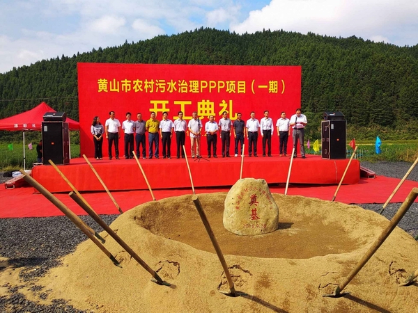 9月28日上午,黄山市农村污水治理PPP项目(一期)在休宁县溪口镇举行开工仪式,黄山市人大常委会副主任叶长荫,市环保局局长程烈光,市财政局副局长冯家成、屯溪区、徽州区、休宁县、歙县、黟县、祁门县等政府相关领导,公司董事长方降龙出席开工仪式。仪式由黄山市人大常委会副秘书长曹诚光主持,安徽环境科技公司副总经理兼黄山项目公司董事长陈怀作表态发言。